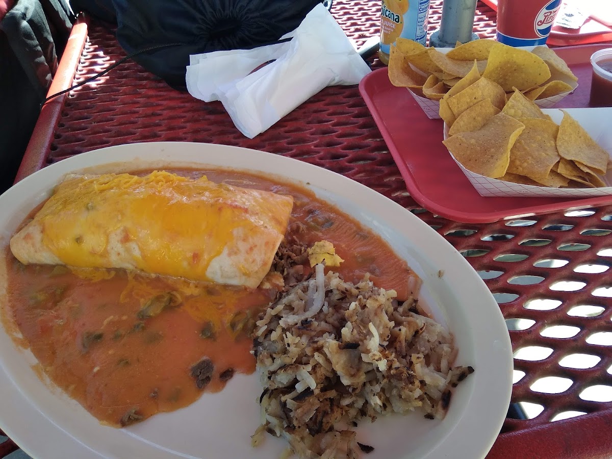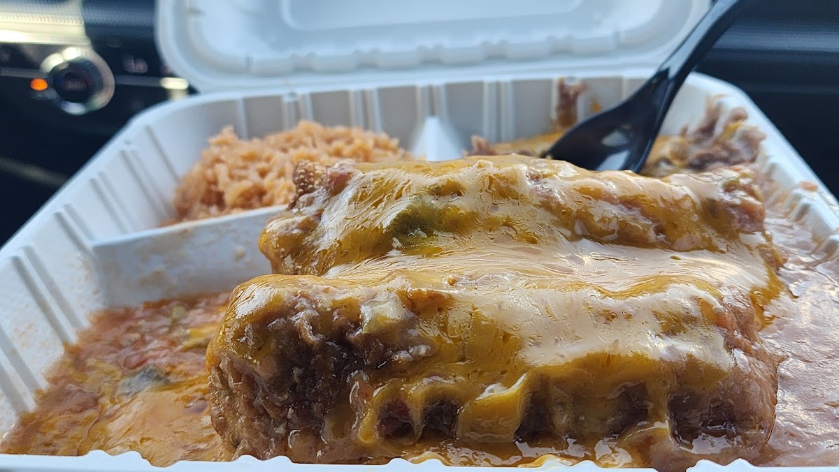 - Chimichanga Dinner - Delight in two crispy egg roll wraps filled with your choice of chicken or beef, accompanied by beans, rice, and flavor-packed tortillas, all for just $11.60.
